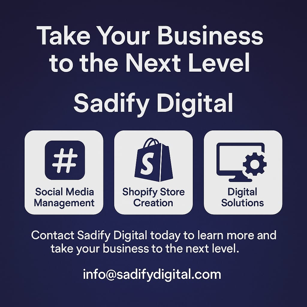 Welcome to Saadify Digital! We specialize in helping businesses grow through smart digital marketing solutions. From managing social media to building Shopify stores, we are here to make your brand stand out.